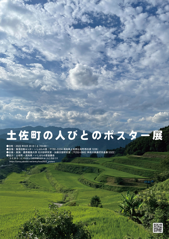 「いしはらの里」に戻って、棚田の写真をつかって「ポスター展のポスター」をつくった。この作業をすると、「キャンプ」が動いていることを実感する。考えてみれば、学生たちとの宿泊を伴う活動は、本当にひさしぶりだ。