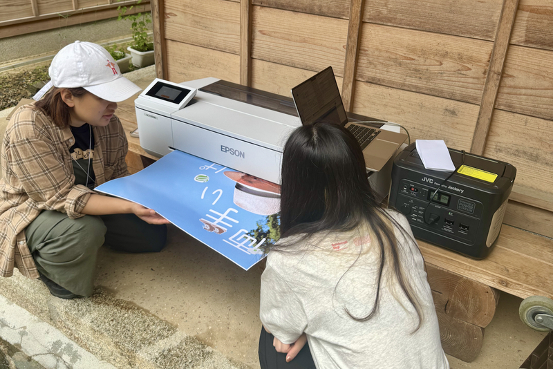 今回は、全部で9枚ある。何度かインク交換やヘッドクリーニングのメッセージを受け取りつつも、印刷は順調にすすんだ。すでに、何度か「外」での印刷を試しているが、モバイルバッテリーで問題なく印刷できる。開始するときに100%充電の状態で、A1サイズのポスターを9枚印刷したあとでも、99%だった。せっかくなので、プリンターはクルマに載せたままポスターを印刷したかった(ぼくの勝手な、『顔たち、ところどころ』ごっことして)。