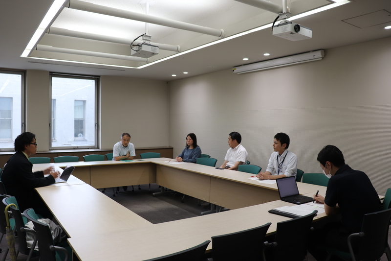 卒プロ1では、主に「管理者」と「設計・施工者」へのインタビューとその整理を行った。ここから、それぞれについて紹介する。まずは、「管理者」とされる湘南藤沢事務室(衛生委員会関係者)の方々へのインタビュー記録についてだ。インタビューは6/3(火)の15:30〜16:30に本館3階の会議室で実施した。窓口を担ってくださった管財担当の岡さんをはじめ、キャンパス事務長の中峯さん、管財担当課長の佐藤さん、総務担当課長の木村さん、管財担当の檜山さんにご参加いただいた。加藤研からは私に加え、記録係としてにいなちゃんが同席し、写真撮影を手伝ってくれた。