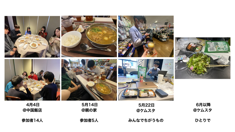 わたしが「あの状況」と呼んでいることは、よく陥る/よくない状況のみならず、何気なくしているが、実は活動やわたしたちの関係においてよい/重要なのではないかと思う状況も含まれている。その例として、「お昼ご飯を一緒に食べる」ということがある。6月に入り、展覧会がひらかれてからは、ケムスタでメンバーがまとまって作業する機会がなくなり、その影響でお昼ご飯を一緒に食べに行く機会も減った。これにより、メンバー同士、とりわけ5人以上での会話の機会が著しく減ってしまった。「一緒に活動している」という意識も薄れてきたように思う。これはわたしにとって無視できない感情の変化だった。それだけ「一緒に食べる」という時間はわたしにとって大切なことだったということなのかもしれないと思っている。お昼ご飯を一緒に食べるような状況を意図的に作り出すことによって、今までは話しにくかったことが話せるようになるきっかけになり、質問するほどの・相談するほどの・報告するほどのことではないと思って言わずにいたことを気軽に言える関係になれる場合があることに気がついた。
