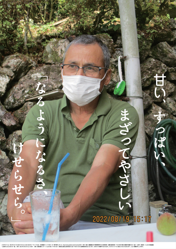 土佐町(高知県)で実施した「土佐キャンプ」(未来構想キャンプ2022)では、9名のかたがたにインタビューをおこない、ひと晩でポスターをつくりました。“ポスター展のポスター”をふくめて10枚。ご協力いただいたみなさん、ありがとうございました。